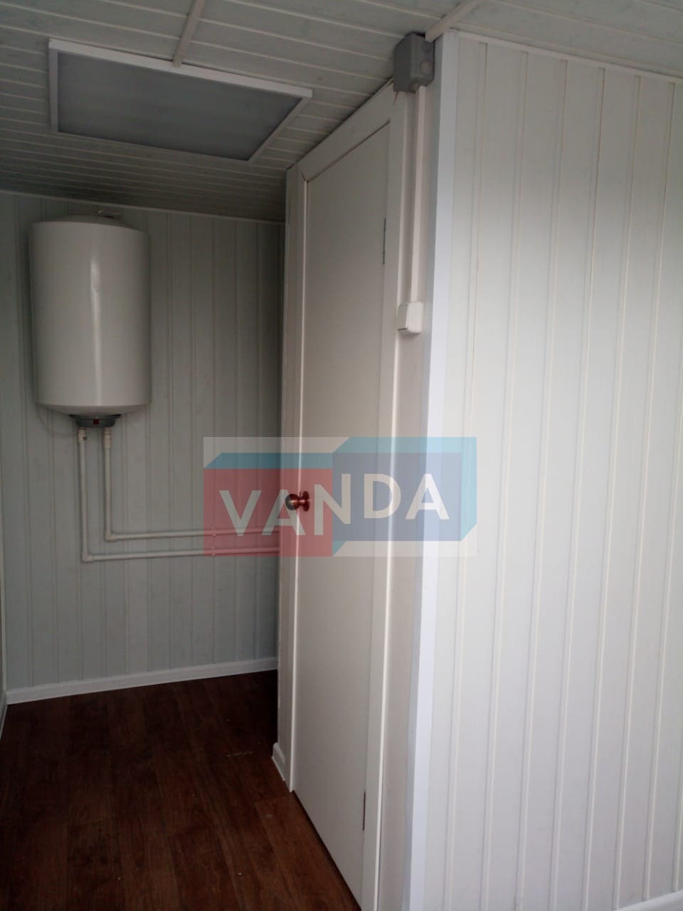 Металлическая бытовка с кухней в тамбуре 5,85 x 2,4 - Оргалит ДВП